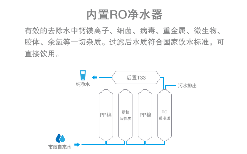 ■饮用安全:一键式消毒功能,隔夜排空功能,反冲洗功能,提示更换过滤器等。