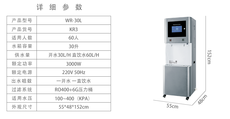 山东商用节能水器威可利品牌30L一开长饮反渗透直饮功能: